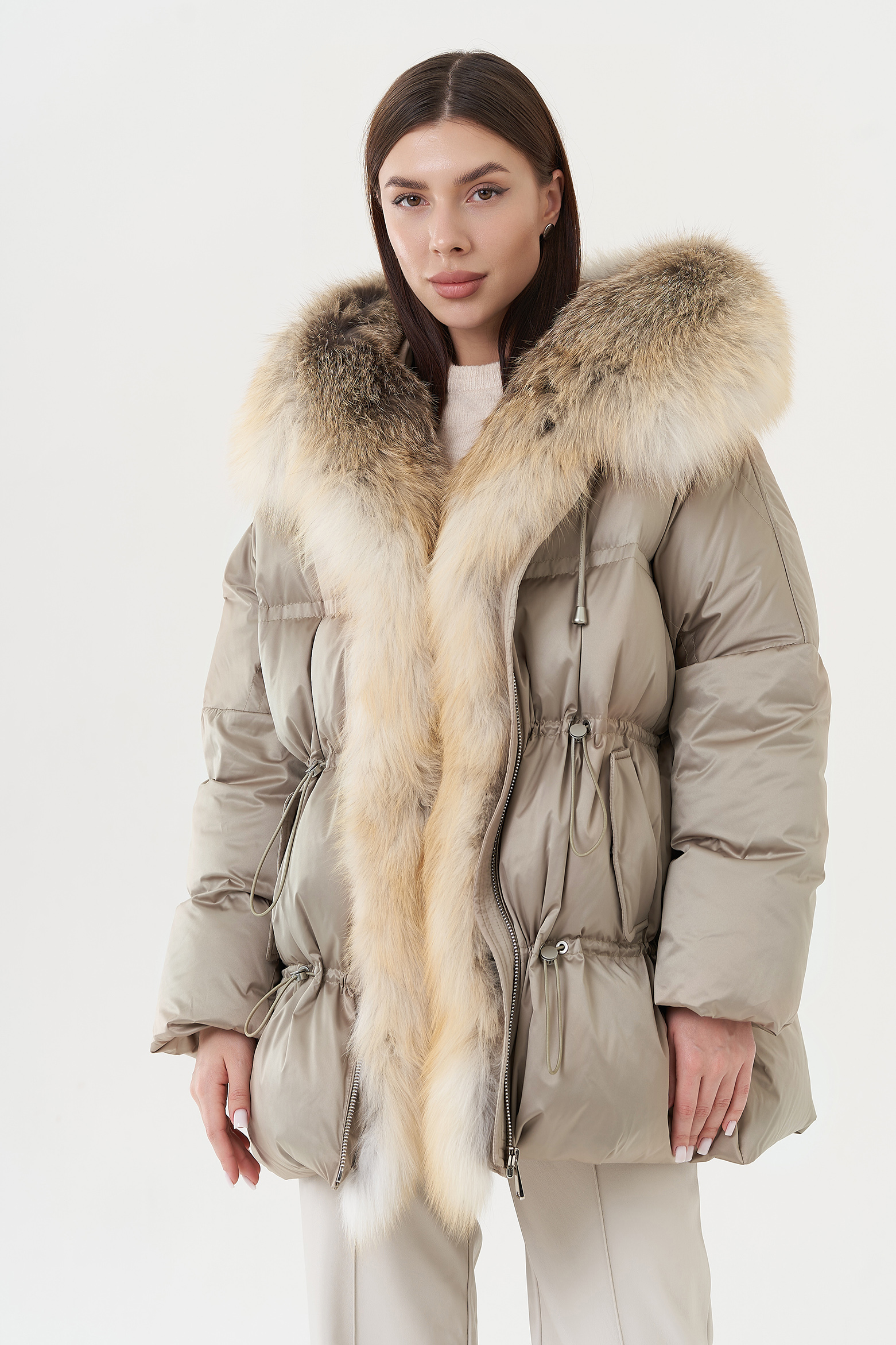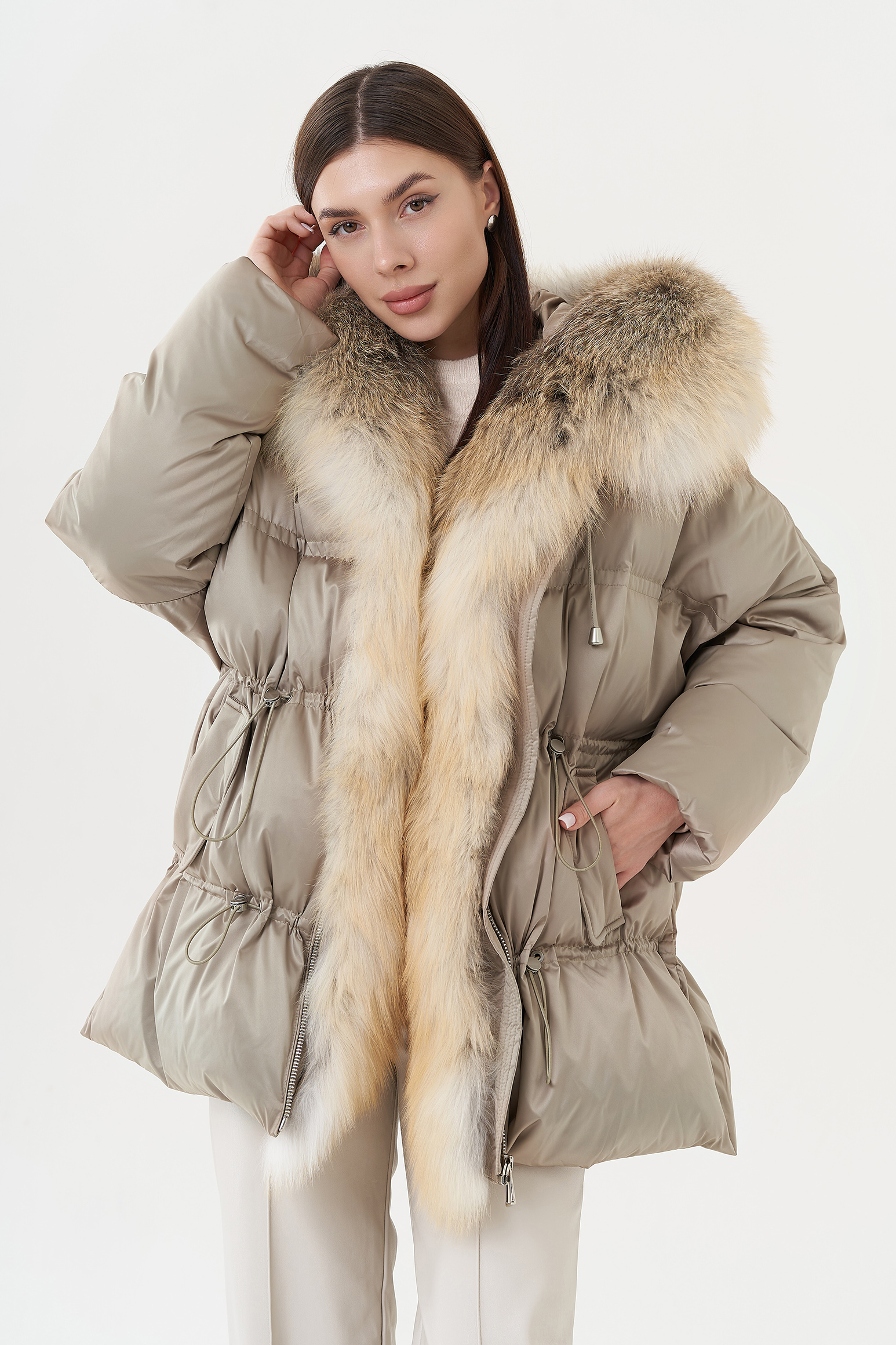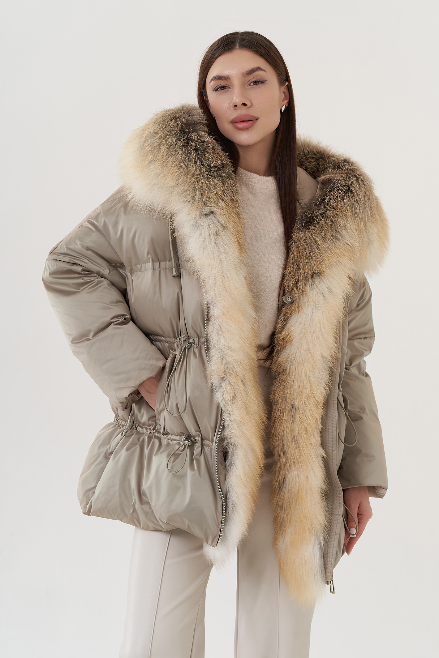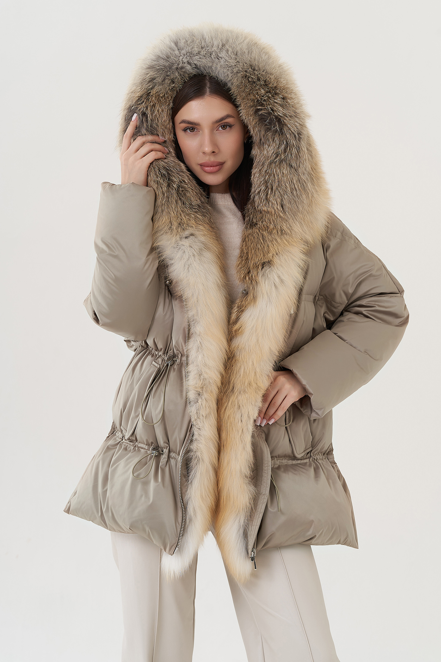Крой воротника - капюшон, отделка лиса